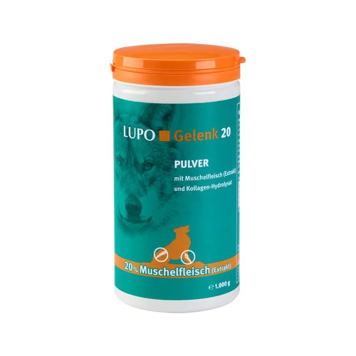 Luposan Gelenk 20 – Pulver ist ein 100% reines Beifutter für Hunde. Es beinhaltet ausschließlich wirksame Stoffe, die zielgerichtet für den Aufbau und die Genesung von Gewebsstrukturen entwickelt sind.