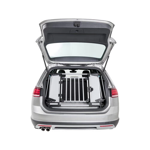Mit diesem Heckgitter kann der gesamte Kofferraum als Liegefläche von Ihrem Hund genutzt werden. Die Bodenplatte ist mit Klettfüßen ausgestattet, die das gesamte Gitter fest an seinem Platz halten. Die rutschfeste Liegematte ist maschinenwaschbar bis 30 Grad Celsius. Das Trixie Heckgitter besteht aus den Materialien Aluminium, Hartfaserplatte und Kunststoff und wird mit vier Befestigungshaken geliefert. Die Tür hat auch einen Schlitz für ein Vorhängeschloss, das Schloss selbst ist nicht enthalten. Die Breite ist einstellbar von 94 bis 114 Zentimetern, die Höhe beträgt 69 Zentimeter und die Tiefe 53 Zentimeter. Schauen Sie sich natürlich die Maße Ihres Kofferraums genau an und prüfen Sie, ob er passt. Das Gitter ist für die meisten Autos geeignet.